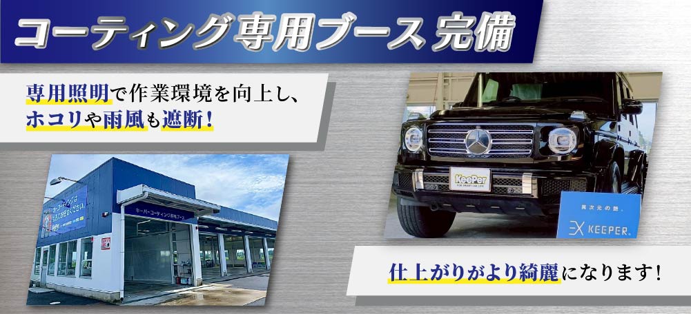 ①カーメンテナンス店に専用のコーティング場を併設する事により、土地代をおさえることに成功!