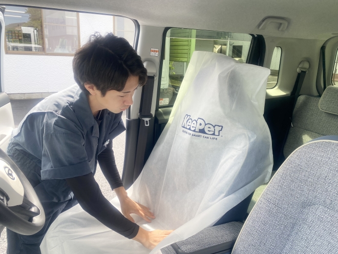 カーコーティング作業時にはシートカバーとマットで大切なお車を丁寧に保護いたします!